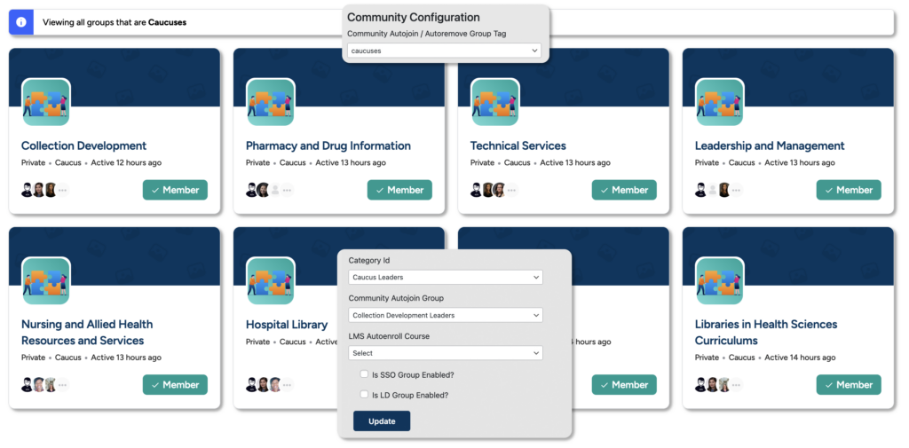 Easily control access to your content by using a taxonomy coupled with access control rules. Rules can be established for different types of membership or activity types to personalize a member’s experience and align it with their career path.