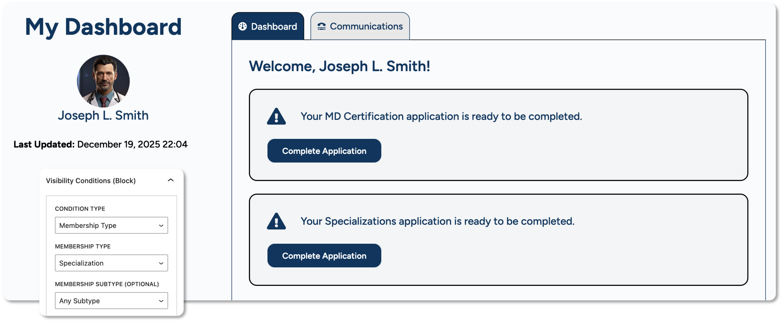Use your association’s data to create a robust, personalized membership dashboard that can guide your members through your programs. From renewal reminders to ID cards to LMS course recommendations and more, the dashboard can be the member’s starting point for self-service, and a great opportunity to push relevant and timeline association messages or advertising.