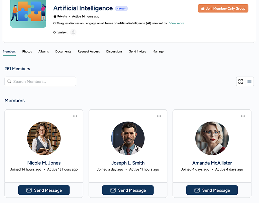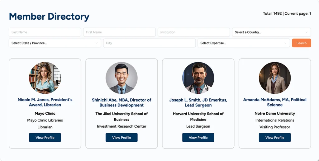 Tecture can help you join membership status with user profiles to present a dynamic and interactive membership directory. Let your members control what kinds of information are visible, and allow members to connect with one another. Directories can serve many other purposes: mentoring programs, certified users, or other recognitions can be similarly displayed.