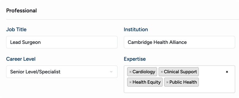 Custom User Profiles The goal of an association is to support its members on their professional journeys or in their professional endeavors, so it is key that the profile fields and selections be aligned with their objectives. Use modern webcam image capture, leverage user profile freshness alerts to request profile updates, and manage fields and selection options.