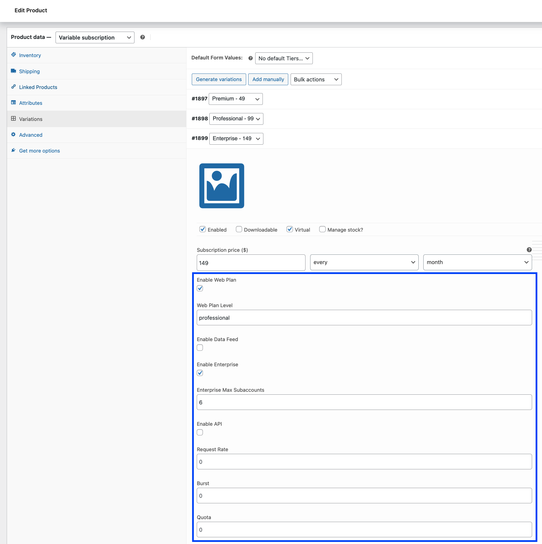 Adjust WooCommerce Subscriptions plugin to implement business plan tiers.